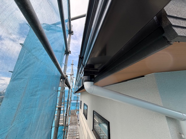 塗装工事が終わり、雨樋の設置が完了いたしました。