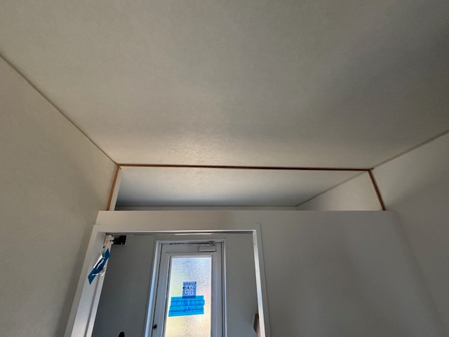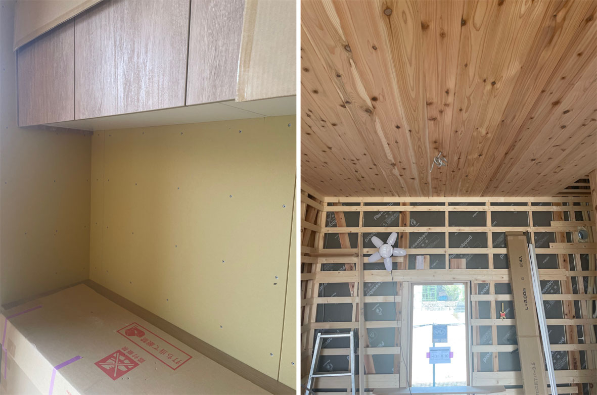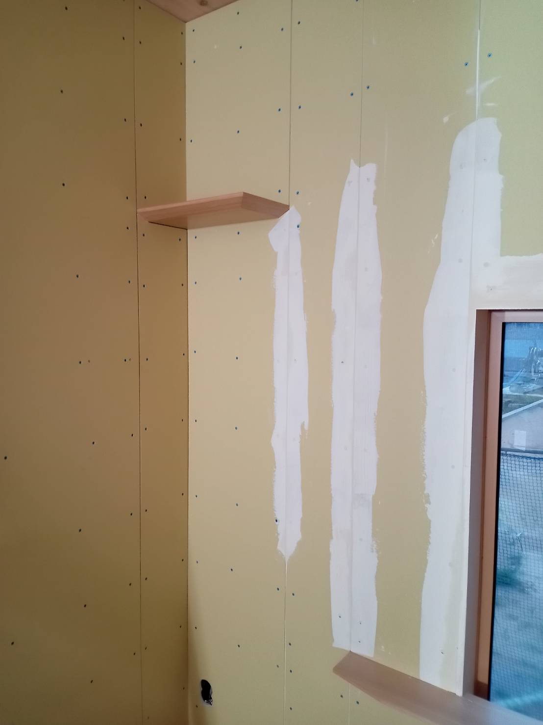 今週から内装業者さんがクロス(壁紙)工事に着手してくださっています。 まずは、クロスを張る前のパテ処理をおこない、きれいに仕上がるよう下地整備をすすめています。