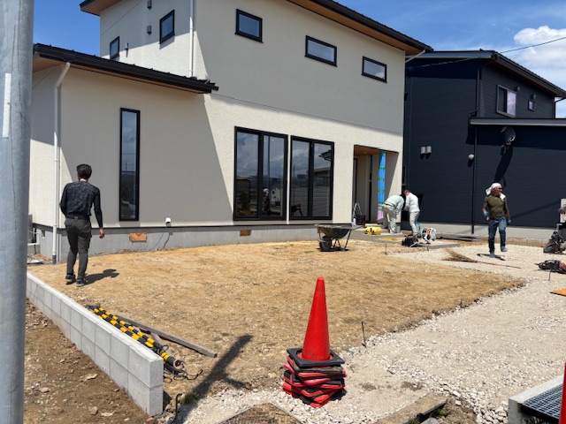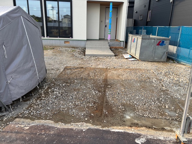 今週末のお引渡を控え、駐車スペースの土間打ち工事を行いました。土間が打たれていない部分は火曜日に人工芝を敷設します。