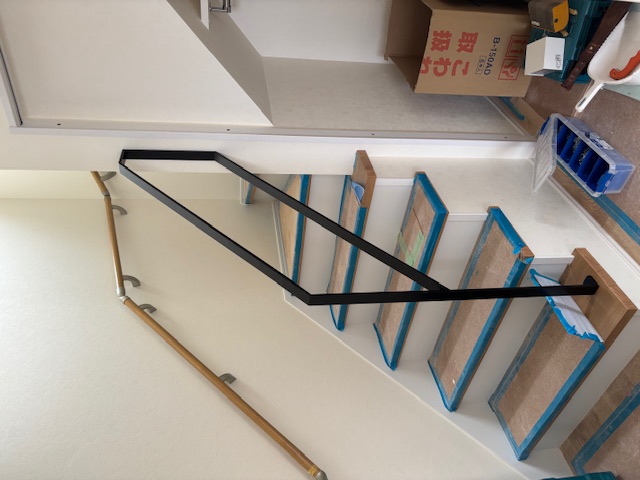 室内のあちらこちらで器具付けがすすんでいます。 階段のアイアン手摺も素敵です。
