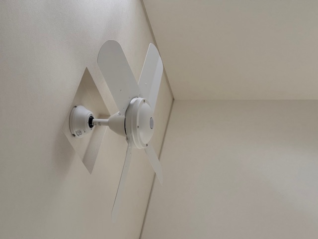 こちらは、WB HOUSEに必須な階段上のシーリングファンです。