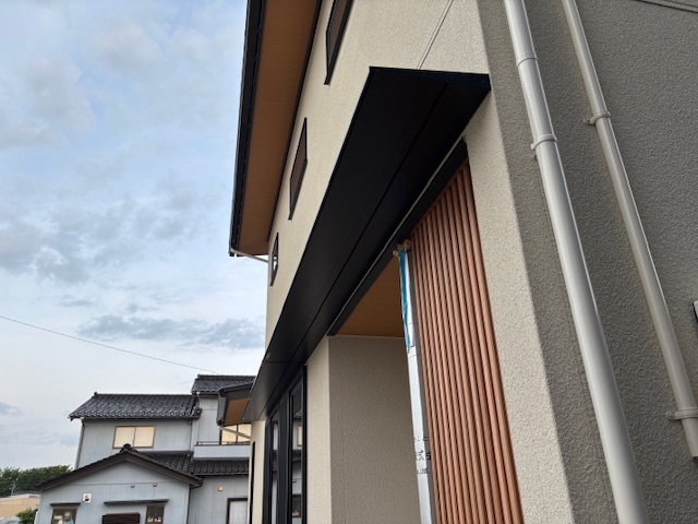 リビング南側の掃き出し窓の庇が取り付けられました。シュッとしています!