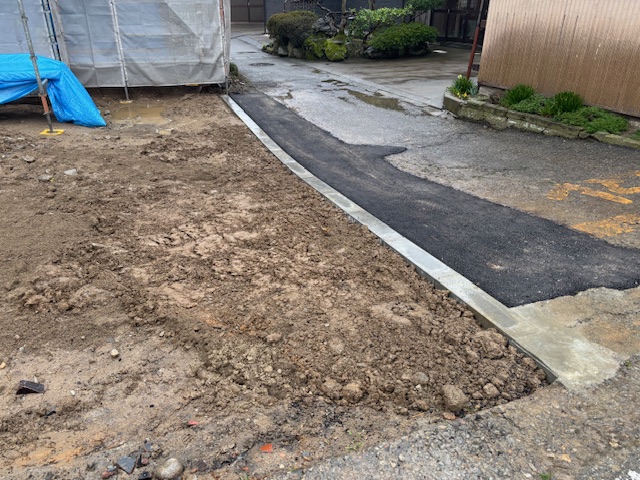 建設地の境界工事として地先ブロックの施工を行いました。 市道の痛んでいたアスファルトも補修させていただきました。