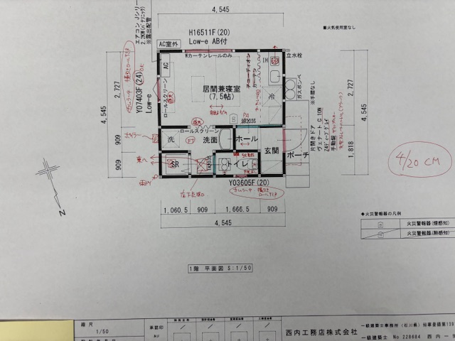 母屋の補修工事と並行していよいよ新築部分の仕様打合せへと進んでいきます。 ご契約時に決定した仕様の再確認と、細かな色打合せを行っていきます。