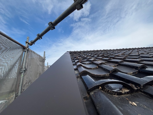 伏せ板を施工した瓦部分もキレイに収まっております。