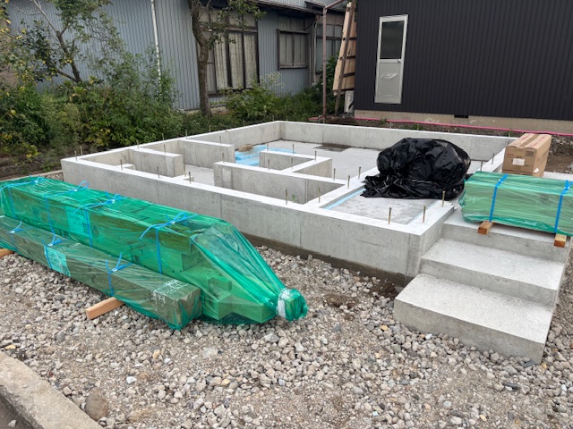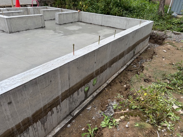 昨日基礎の型枠を解体し全体があらわになりました。9/25に予定している上棟までは養生期間となります。