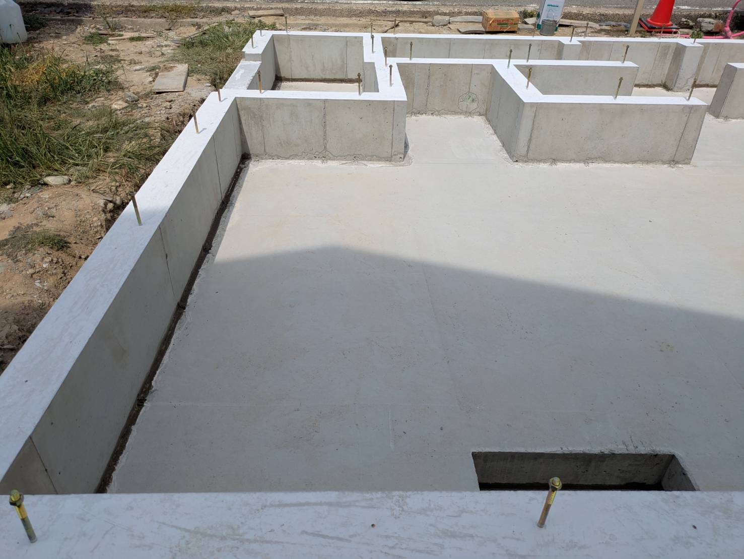 安全パトロールも実施しました。まもなく始まる土間工事に向けて外部の排水口の取り付けも完了しておりました。