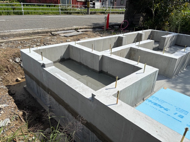 昨日、基礎立ち上がり部分のコンクリートの打設工事を行いました。来週型枠の解体を行っていきます。