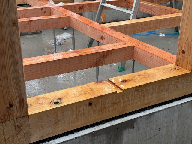 来週に控えた上棟に向けて、土台に使用する木材が搬入されました。週明け月曜に土台伏せ作業を行います。