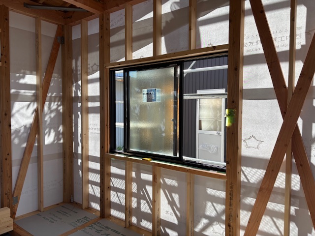 ドア枠と併せてサッシの取り付けも完了しております。
