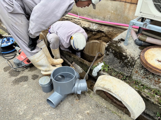 本日は安全パトロールも実施しました。 先週末に工事した母屋の下水桝の交換工事を行っていました。