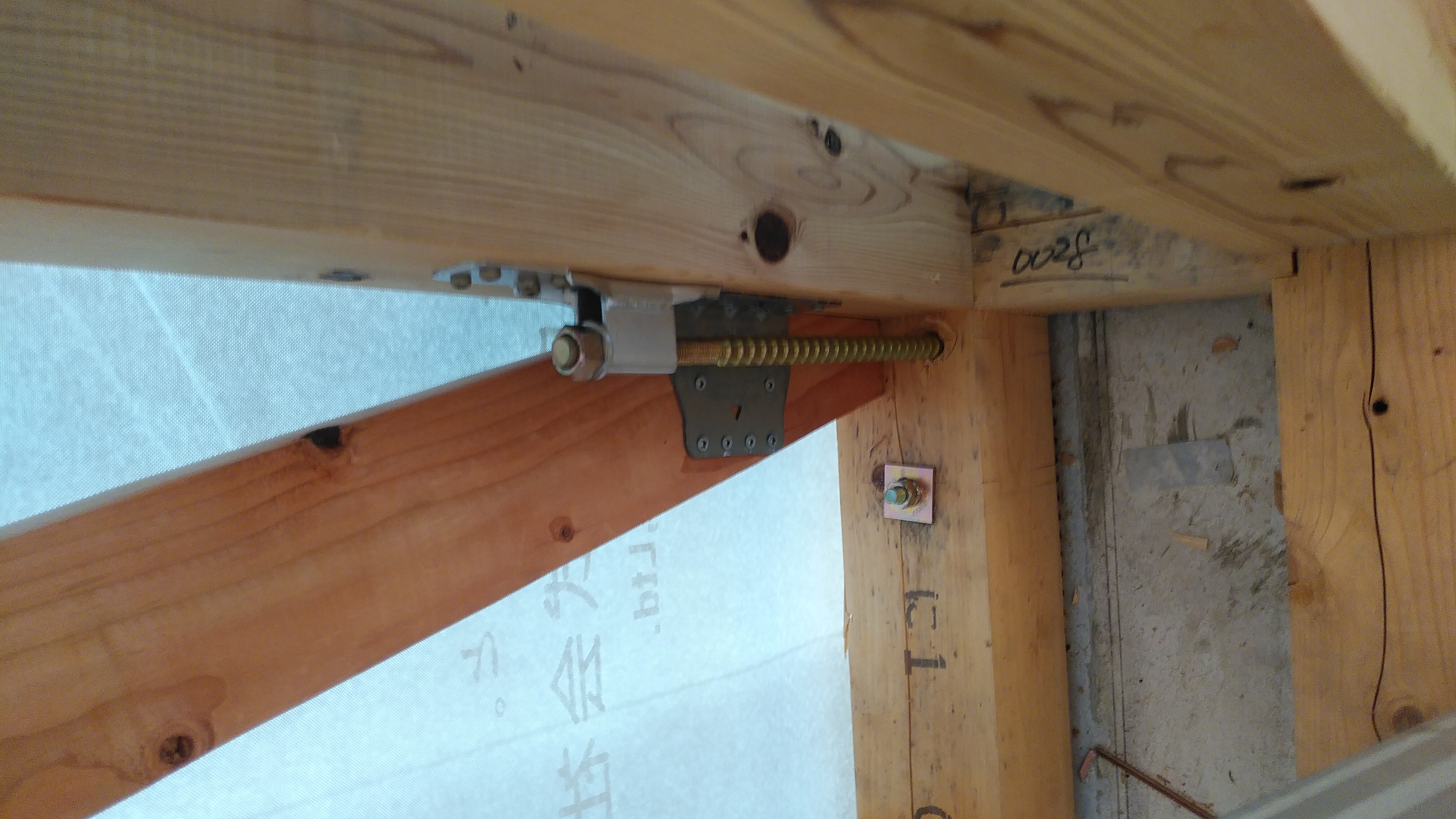 筋交いが取り付けられ、根元には筋交いプレートが取り付けられました。 地震があったときに力強く踏んばってくれる頼りになる金物です。