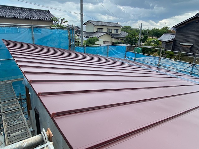 本日、安全パトロールを行いました。 安全を確認しながら屋根が見える場所へ。 板金が施工された様子を撮ってみました。 地上からは見えませんが、雪スズメ様らしさのある素敵な色です! 足場が外れるのが楽しみです。
