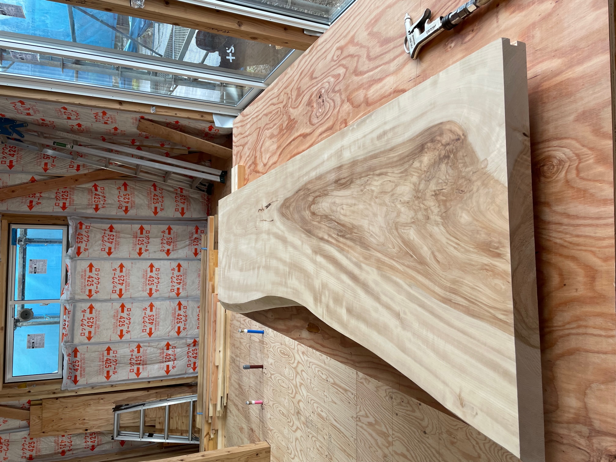 本日、安全パトロールを実施しました。現場は整理整頓清掃され、とてもキレイでした。 今日は玄関框が取り付けられます。趣のあるステキな玄関になりますね♪
