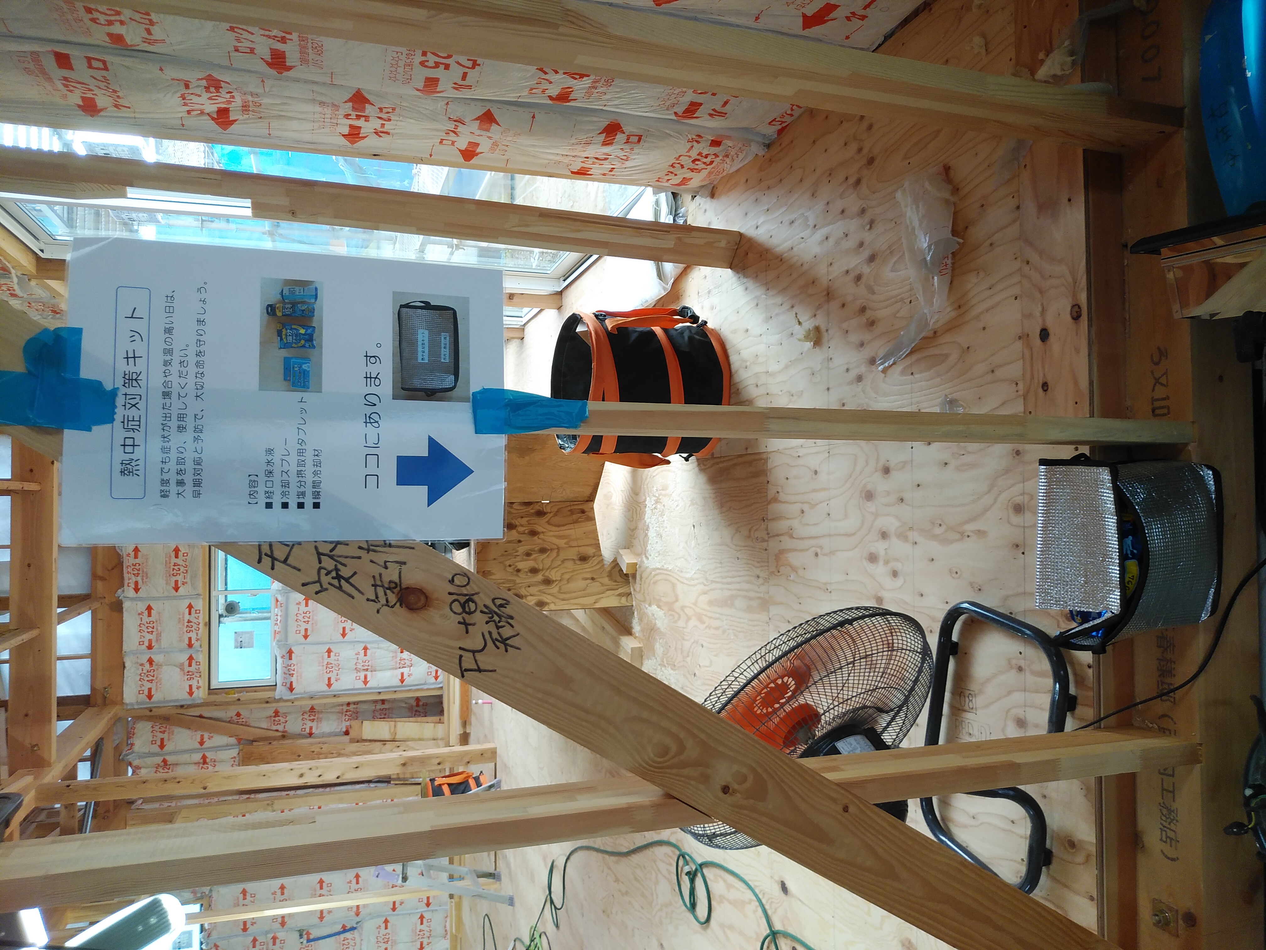 当社の建築中の現場では、夏季期間中は、職人さんや出入りする運送業者様の健康を守るために熱中症対キットを整備しております。 中には経口補水液、冷却スプレー、塩分摂取用タブレット、瞬間冷却材があり、もしもの時やもしもの時がこないようにしております。