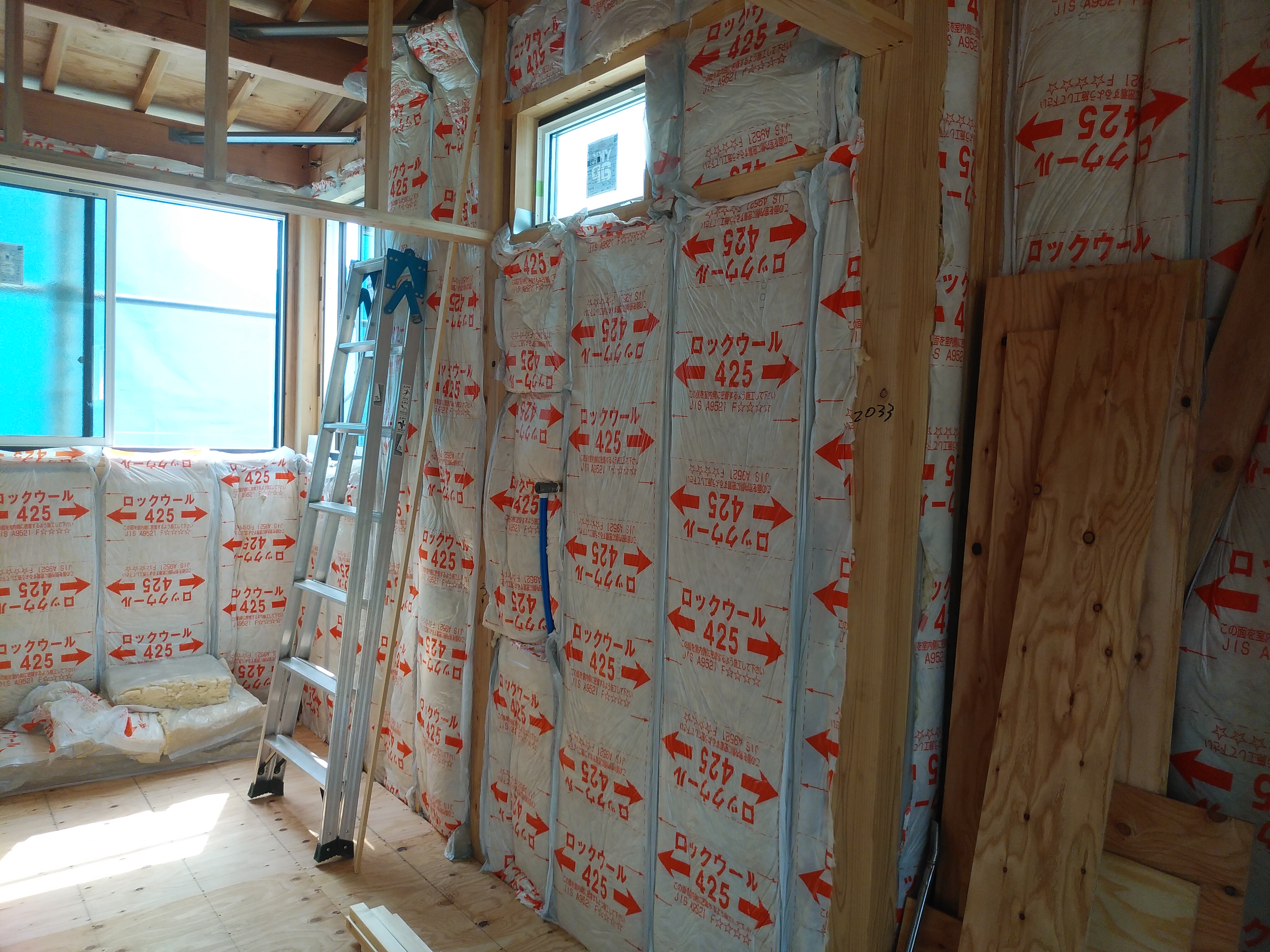 ユニットバスの取付に際しまして、先行して壁面部分の断熱材の施工を行いました。