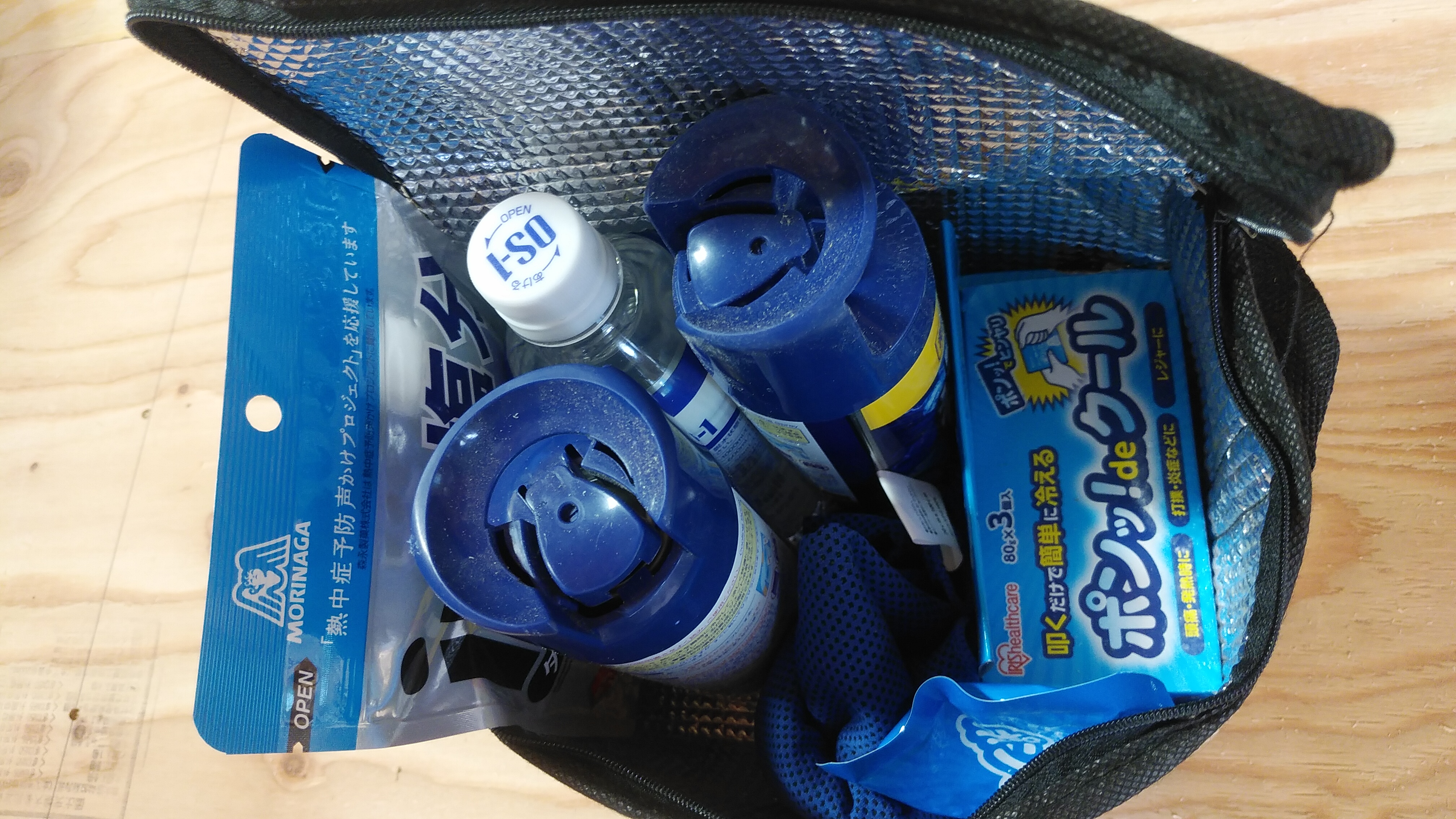 現場には熱中症対策キットを設置しております。 中にはOS1や塩タブレットが入っており万が一に備えております。