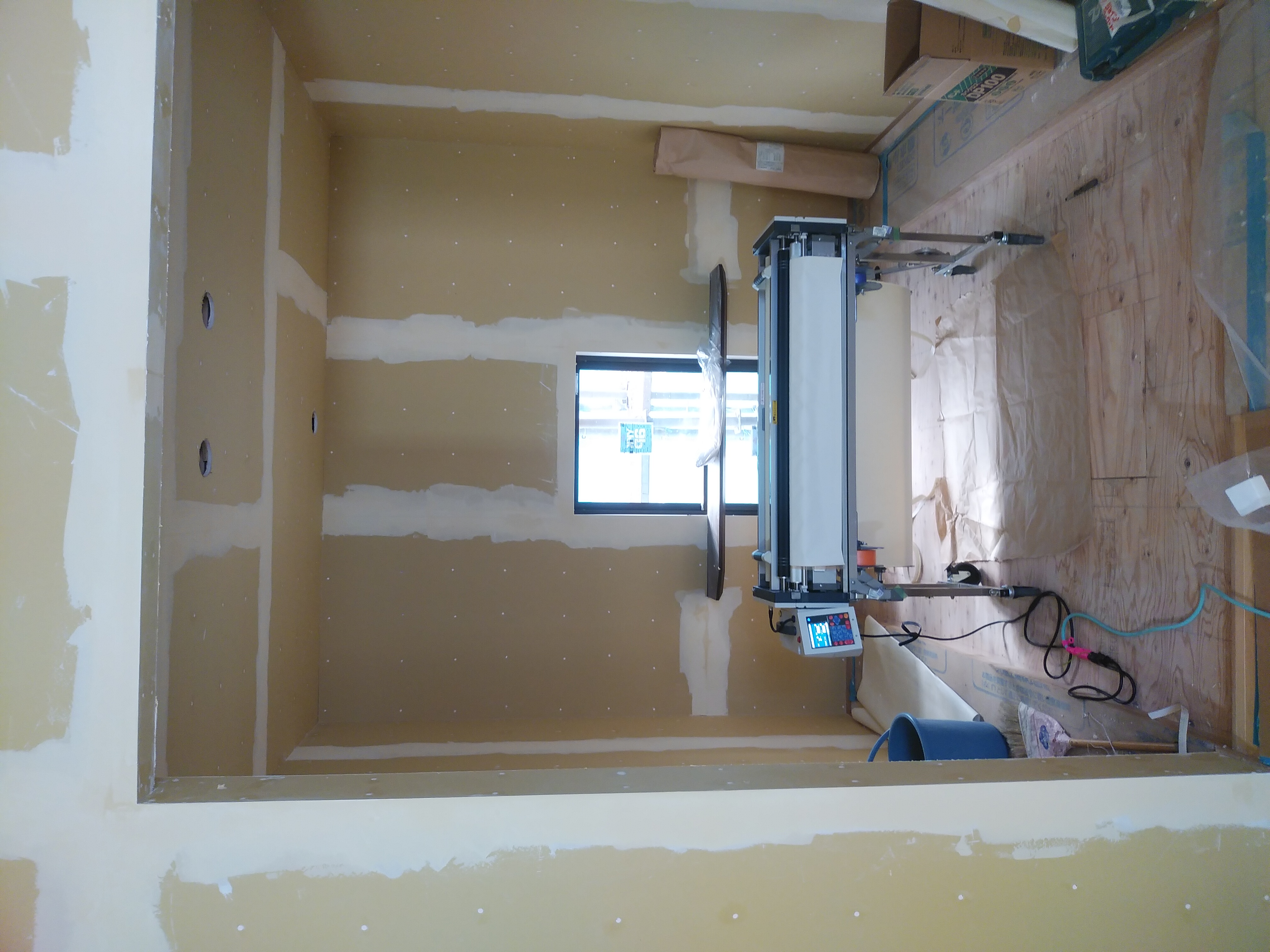 昨日、安全パトロールへ行ってきました! こちらはサンルームの様子です。 プラスターボードが貼られ、どんどん完成に近づいております。 完成まであとわずか。 安全に工事を進めてまいります。