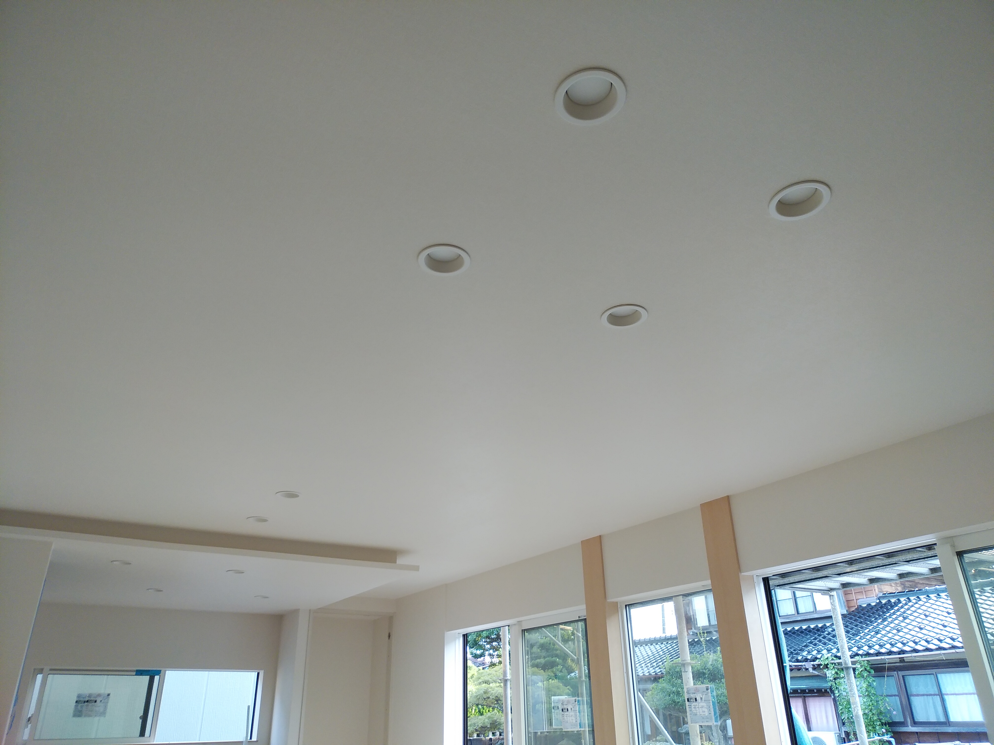 先日、クロス貼りの前に照明、コンセント位置のボードを開口するとお伝えしましたが、クロス工事が終わった後はこのような感じで照明器具つけられました。 随分と雰囲気がかわってきました!