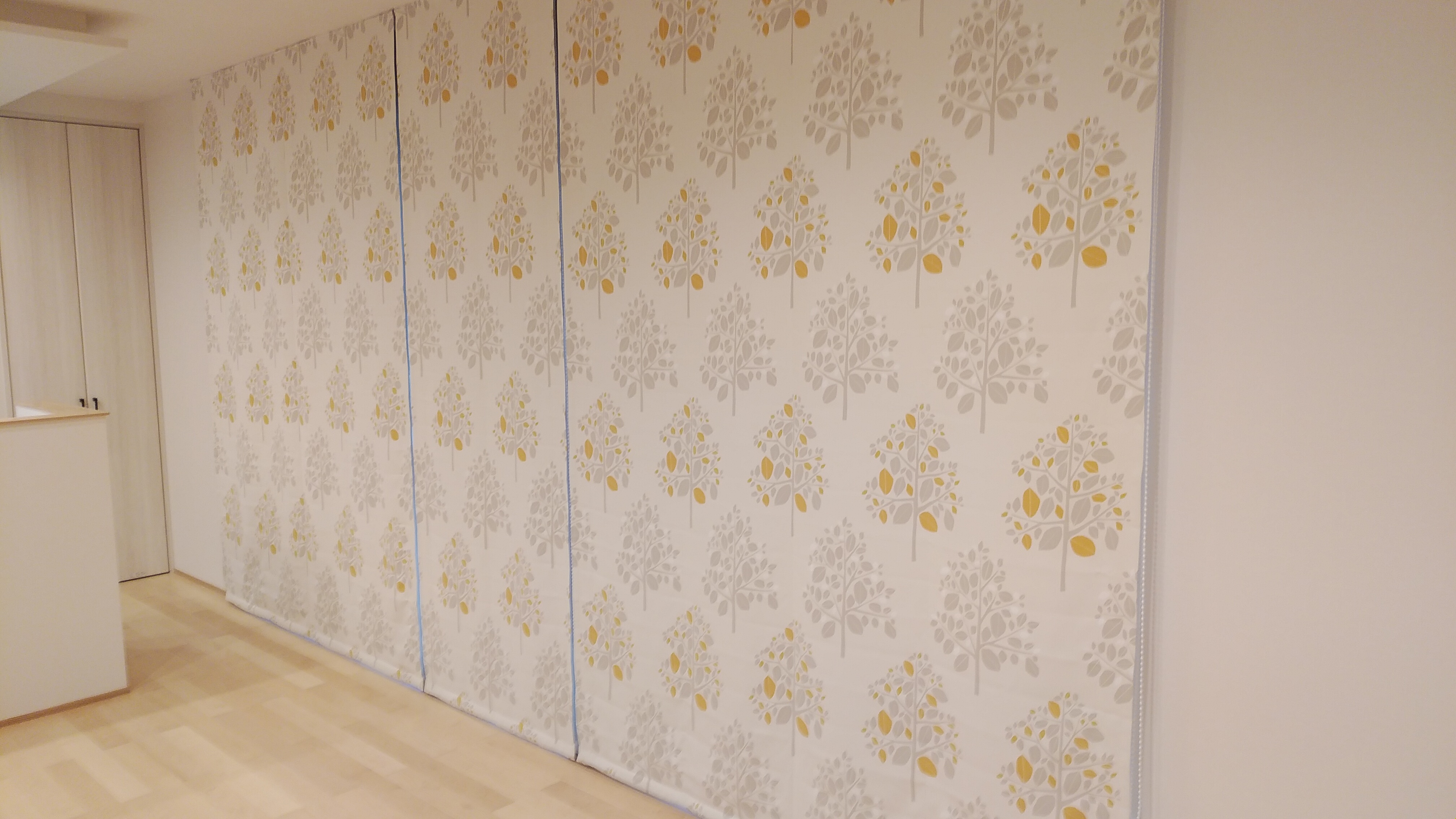 クロス工事に着手しました! 画像はクロスをカットする機械です。職人さんが図面をみながら丁寧にカットし天井、壁に貼り付けていきます。