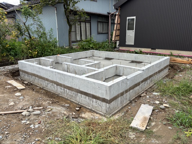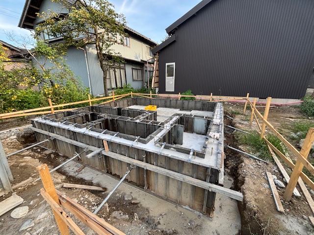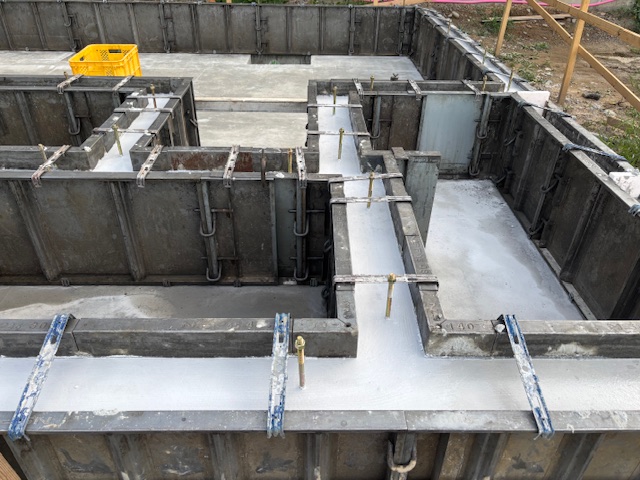 昨日、基礎立ち上がり部分のコンクリートの打設工事を行いました。来週型枠の解体を行っていきます。