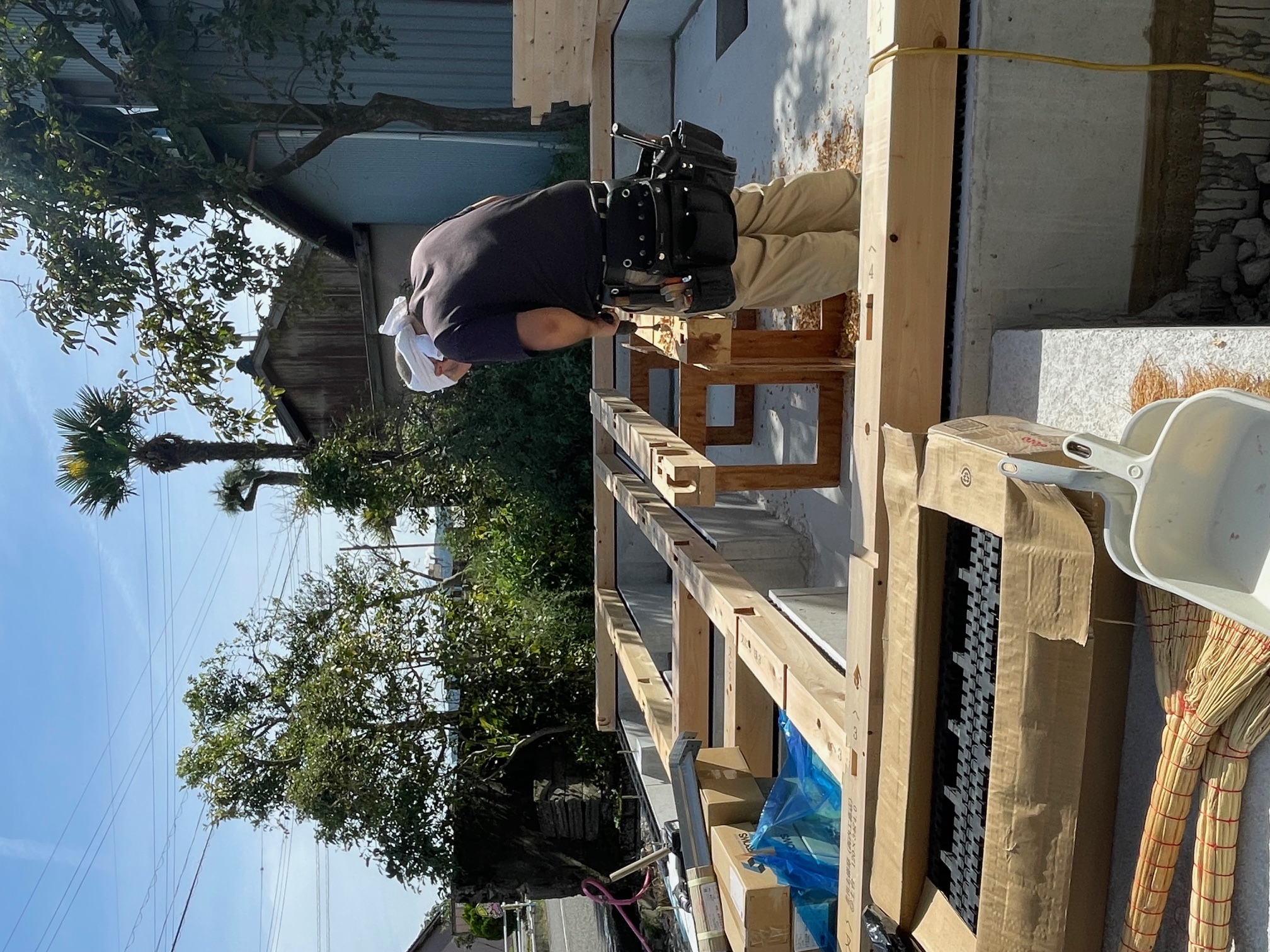 本日安全パトロールを実施いたしました。 青い色の材料はポーチ廻りに使用する断熱材です。