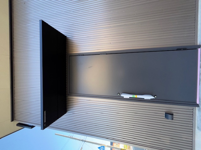 玄関ドアがこれまでの工事ドアから正式なものに変わりました。出入りする際の雨除け用の庇も取り付けられました。