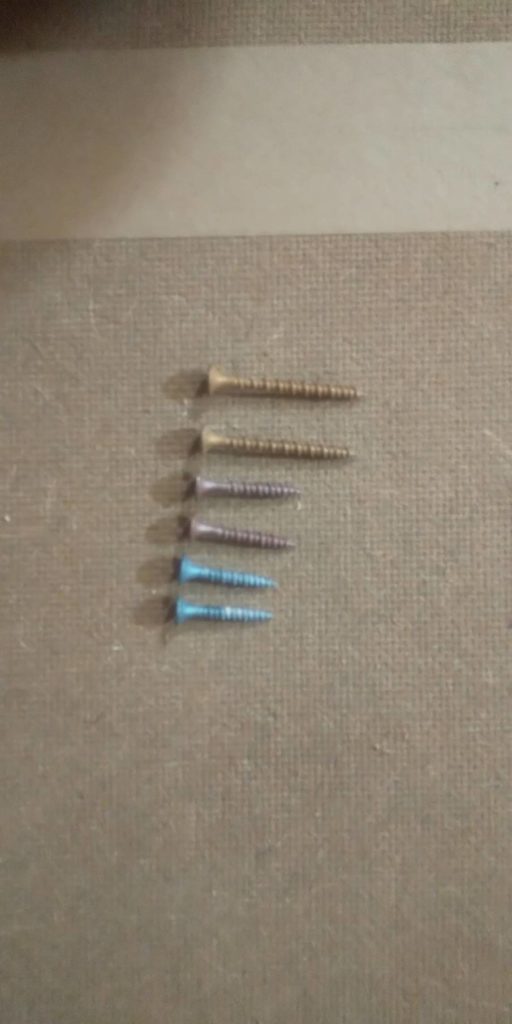 工事をするときによく使う「ビス」についてですが、いくつか長さの種類があり、色で識別できるようになっています。
