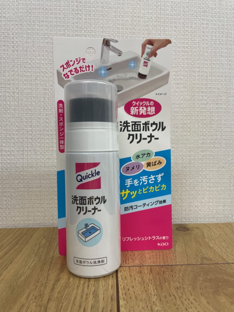 私はお風呂場のスポンジとバス用洗剤を持ってきて洗面ボウルを掃除していたのですが、掃除後の濡れたスポンジをお風呂に戻すときに床が濡れたり、そもそも取りにいくのも面倒だと感じていたので、こんな商品をずっと待っていました。